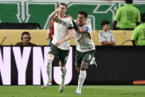 (250705) -- FILADELFIA, 5 julio, 2025 (Xinhua) -- Imagen del 4 de julio de 2025 de Cole Palmer (i), de Chelsea, festejando su anotación durante los cuartos de final entre Palmeiras, de Brasil, y Chelsea, de Inglaterra, en la Copa Mundial de Clubes de la FIFA 2025, en Filadelfia, Estados Unidos. (Xinhua/Li Rui) (rtg) (da)