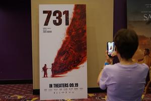 (250919) -- LOS ANGELES, 19 septiembre, 2025 (Xinhua) -- Imagen del 18 de septiembre de 2025 de una espectadora tomando una fotografía a un cartel de la película "Evil Unbound" (El Mal Desatado) en un cine, en Los Angeles, Estados Unidos. "Evil Unbound" (El Mal Desatado), una película de producción china que narra las atrocidades cometidas por la infame Unidad 731 de guerra bacteriológica japonesa durante la Segunda Guerra Mundial, se estrenó el jueves en Los Angeles. (Xinhua/Zeng Hui) (jg) (da) (vf)
