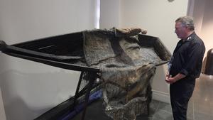 (250812) -- NUEVA ORLEANS, 12 agosto, 2025 (Xinhua) -- Imagen del 11 de agosto de 2025 de un visitante observando una obra de arte durante una exposición en conmemoración del 20 aniversario del huracán Katrina en el Museo Ogden de Arte Sureño, en Nueva Orleans, Estados Unidos. (Xinhua/Xu Jianmei) (oa) (ah) (vf)