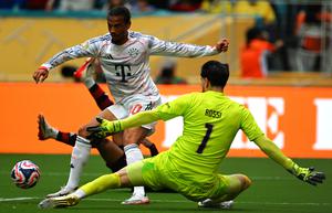 (250630) -- MIAMI, 30 junio, 2025 (Xinhua) -- Imagen del 29 junio 2025 del guardameta Agustin Rossi (d), de CR Flamengo, atajando el balón durante el partido de octavos de final entre CR Flamengo de Brasil y Bayern Múnich de Alemania, en la Copa Mundial de Clubes de la FIFA 2025 en el Hard Rock Stadium, en Miami, Florida, Estados Unidos. (Xinhua/Wu Xiaoling) (oa) (rtg) (vf)