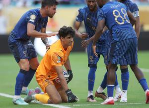(250619) -- MIAMI, 19 junio, 2025 (Xinhua) -- Imagen del 18 de junio de 2025 de jugadores de Al Hilal festejando con el guardameta Yassine Bounou (2-i) durante el partido del grupo H entre Real Madrid C. F., de España, y Al Hilal, de Arabia Saudita, en la Copa Mundial de Clubes de la FIFA 2025, en el Hard Rock Stadium, en Miami, Estados Unidos. (Xinhua/Li Ming) (rtg) (ra) (vf)