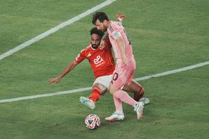 (250615) -- MIAMI, 15 junio, 2025 (Xinhua) -- Imagen del 14 de junio de 2025 de Lionel Messi (d), de Inter Miami CF, disputando el balón durante el partido de apertura entre Inter Miami CF de Estados Unidos, y Al Ahly de Egipto, en la Copa Mundial de Clubes de la FIFA 2025, en Miami, Estados Unidos. (Xinhua/Huang Zongzhi) (oa) (da)