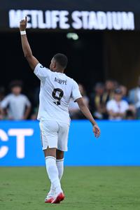 (250706) -- NUEVA JERSEY, 6 julio, 2025 (Xinhua) -- Imagen del 5 de julio de 2025 de Kylian Mbappé, del Real Madrid, festejando su anotación durante el partido de cuartos de final entre Real Madrid, de España, y Borussia Dortmund, de Alemania, en la Copa Mundial de Clubes de la FIFA 2025, en Nueva Jersey, Estados Unidos. (Xinhua/Li Rui) (oa) (ah)