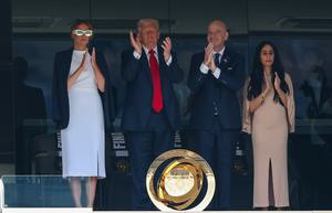(250714) -- NUEVA JERSEY, 14 julio, 2025 (Xinhua) -- Imagen del 13 de julio de 2025 del presidente estadounidense, Donald Trump (2-i), y el presidente de la FIFA, Gianni Infantino (2-d), vistos previo al partido final entre Chelsea FC, de Inglaterra, y Paris Saint-Germain, de Francia, en la Copa Mundial de Clubes de la FIFA 2025, en el MetLife Stadium, en Nueva Jersey, Estados Unidos. (Xinhua/Li Ming) (rtg) (ah) (vf)