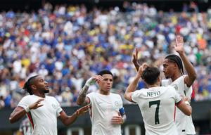 (250709) -- NUEVA JERSEY, 9 julio, 2025 (Xinhua) -- Imagen del 8 de julio de 2025 de Joao Pedro (d), de Chelsea, reaccionando después de realizar su primera anotación durante el partido de semifinal entre Fluminense FC, de Brasil, y Chelsea FC, de Inglaterra, en la Copa Mundial de Clubes de la FIFA 2025, en el MetLife Stadium, en Nueva Jersey, Estados Unidos. (Xinhua/Li Ming) (ah) (ra) (vf)
