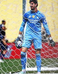 (250710) -- NUEVA JERSEY, 10 julio, 2025 (Xinhua) -- Imagen del 9 de julio de 2025 del guardameta Thibaut Courtois, de Real Madrid, reaccionando durante el partido de semifinal entre Paris Saint-Germain, de Francia, y Real Madrid, de España, en la Copa Mundial de Clubes de la FIFA 2025, en el MetLife Stadium, en Nueva Jersey, Estados Unidos. (Xinhua/Wu Xiaoling) (da) (ra) (vf)