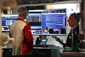 (260427) -- NUEVA YORK, 27 abril, 2026 (Xinhua) -- Corredores de bolsa conversan en el piso de negociación de la Bolsa de Valores de Nueva York, en Nueva York, Estados Unidos, el 27 de abril de 2026. Las acciones estadounidenses cerraron mixtas el lunes. El promedio industrial Dow Jones cayó 62,92 puntos, o un 0,13 por ciento, hasta 49.167,79. El S&P 500 sumó 8,83 puntos, o un 0,12 por ciento, hasta 7.173,91. El índice compuesto Nasdaq aumentó 50,502 puntos, o un 0,20 por ciento, hasta 24.887,1. (Xinhua/Liu Yanan) (vf) (ah) (ce)