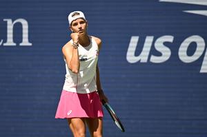(250827) — NUEVA YORK, 27 agosto, 2025 (Xinhua) — Imagen del 26 de agosto de 2025 de Emiliana Arango, de Colombia, festejando un punto durante el partido de la primera ronda de individuales femeninos ante Iga Swiatek, de Polonia, en el campeonato de tenis US Open 2025, en Nueva York, Estados Unidos. (Xinhua/Li Rui) (ah) (ra) (ce)