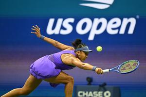 (250905) -- NUEVA YORK, 5 septiembre, 2025 (Xinhua) -- Osaka Naomi devuelve la pelota durante el partido de semifinal de individuales femeninos entre Amanda Anisimova, de Estados Unidos, y Osaka Naomi, de Japón, en el campeonato de tenis US Open 2025, en Nueva York, Estados Unidos, el 5 de septiembre de 2025. (Xinhua/Li Rui) (rtg) (ra) (vf)