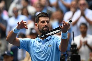 (250828) -- NUEVA YORK, 28 agosto, 2025 (Xinhua) -- Imagen del 27 de agosto de 2025 de Novak Djokovic, de Serbia, festejando después de ganar el partido de la segunda ronda de individuales masculinos, ante Zachary Svajda, de Estados Unidos, en el campeonato de tenis US Open 2025, en Nueva York, Estados Unidos. (Xinhua/Li Rui) (rtg) (ra) (vf)