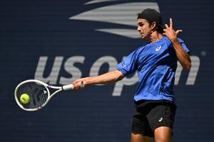 (250828) -- NUEVA YORK, 28 agosto, 2025 (Xinhua) -- Imagen del 27 de agosto de 2025 de Zachary Svajda, de Estados Unidos, devolviendo la pelota durante el partido de la segunda ronda de individuales masculinos, ante Novak Djokovic, de Serbia, en el campeonato de tenis US Open 2025, en Nueva York, Estados Unidos. (Xinhua/Li Rui) (rtg) (ra) (vf)