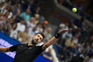 (250901) -- NUEVA YORK, 1 septiembre, 2025 (Xinhua) -- Imagen del 31 de agosto de 2025 de Novak Djokovic, de Serbia, sirviendo la pelota durante el partido de cuarta ronda de individuales masculinos ante Jan-Lennard Struff, de Alemania, en el campeonato de tenis US Open 2025, en Nueva York, Estados Unidos. (Xinhua/Li Rui) (oa) (ah) (vf)