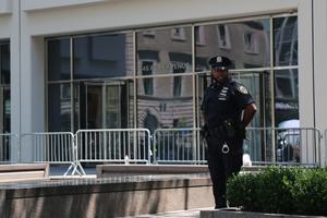 (250729) -- NUEVA YORK, 29 julio, 2025 (Xinhua) -- Un oficial de policía monta guardia después de un tiroteo en el 345 de Park Avenue, en Nueva York, Estados Unidos, el 29 de julio de 2025. Un hombre armado acabó con la vida de cuatro personas e hirió a otras seis la tarde del lunes, antes de suicidarse de un disparo dentro de un edificio de oficinas en Manhattan, Nueva York. (Xinhua/Liu Yanan) (oa) (ah) (ce)