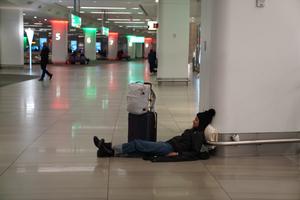 (251227) -- NUEVA YORK, 27 diciembre, 2025 (Xinhua) -- Imagen del 26 de diciembre de 2025 de una pasajera varada vista en el Aeropuerto LaGuardia, en Nueva York, Estados Unidos. Una tormenta de nieve azotó Nueva York el viernes, lo que provocó retrasos y cancelaciones de vuelos. (Xinhua/Zhang Fengguo) (jg) (da)