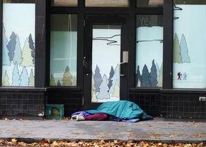(251105) — PORTLAND, 5 noviembre, 2025 (Xinhua) — Imagen del 4 de noviembre de 2025 de una persona sin hogar vista durmiendo en una acera, en Portland, Oregón, Estados Unidos. El Senado de Estados Unidos volvió a rechazar el martes un proyecto de ley de financiamiento temporal, en el decimocuarto intento fallido. (Xinhua/Wu Xiaoling) (jg) (da) (ce)