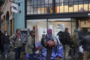 (251105) -- PORTLAND, 5 noviembre, 2025 (Xinhua) -- Personas sin hogar esperan recibir suministros de ayuda de una organización sin fines de lucro, en Portland, Oregón, Estados Unidos, el 5 de noviembre de 2025. El actual cierre del Gobierno federal de Estados Unidos ha entrado en su 36º día a la 00:01 hora local (05:01 GMT) del miércoles, sobrepasando el anterior récord de 35 días registrado durante el cierre de 2018-2019 y convirtiéndose así en el más largo de la historia del país norteamericano. (Xinhua/Wu Xiaoling) (jg) (da) (ce)