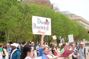 (250420) — WASHINGTON, 20 abril, 2025 (Xinhua) — Imagen del 19 de abril de 2025 de manifestantes reunidos durante una manifestación frente a la Casa Blanca, en Washington, D.C., Estados Unidos. Miles de manifestantes tomaron las calles el sábado en varias ciudades estadounidenses durante lo que describieron como parte del «Día Nacional de Acción» contra las políticas del presidente Donald Trump y otras amenazas que se perciben sobre la democracia. (Xinhua/Hu Yousong) (oa) (ah)
