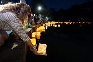 (250622) -- WASHINGTON, 22 junio, 2025 (Xinhua) -- Imagen del 21 de junio de 2025 de personas soltando sus linternas de agua en el Festival de Linternas de Agua, en Pawtucket, Rhode Island, Estados Unidos. (Xinhua/Ziyu Julian Zhu) (oa) (da)