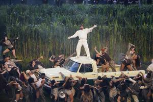 (260209) -- SANTA CLARA, 9 febrero, 2026 (Xinhua) -- Imagen del 8 de febrero de 2026 del cantante Bad Bunny (c-arriba) realizando una presentación durante el Super Bowl LX de la NFL, entre Seattle Seahawks y New England Patriots, en Santa Clara, Estados Unidos. (Xinhua/Wu Xiaoling) (rtg) (ah) (vf)