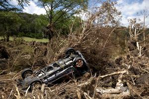 (250712) — HOUSTON, 12 julio, 2025 (Xinhua) — Imagen del 11 de julio de 2025 de un vehículo volcado entre árboles caídos, en Hunt, Texas, Estados Unidos. El presidente de Estados Unidos, Donald Trump, visitó el centro de Texas el viernes, respondiendo una vez más a las críticas a su política y a la respuesta federal a las graves inundaciones del 4 de julio, que dejaron al menos 121 muertos y más de 150 desaparecidos. (Xinhua/Nick Wagner) (jg) (da)