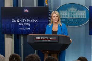 (250612) -- WASHINGTON, 12 junio, 2025 (Xinhua) -- Imagen del 11 de junio de 2025 de la secretaria de prensa de la Casa Blanca, Karoline Leavitt, hablando durante una conferencia de prensa en la Casa Blanca, en Washington, D.C., Estados Unidos. (Xinhua/Hu Yousong) (rtg) (ra) (ce)