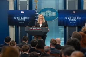 (250707) -- WASHINGTON, 7 julio, 2025 (Xinhua) -- La secretaria de Prensa de la Casa Blanca, Karoline Leavitt, habla durante una conferencia de prensa, en la Casa Blanca, en Washington, D.C., Estados Unidos, el 7 de julio de 2025. Leavitt dijo el lunes por la tarde que Trump tiene planeado emitir una orden ejecutiva para ampliar la pausa de los "aranceles recíprocos" del 9 de julio al 1 de agosto. (Xinhua/Hu Yousong) (rtg) (ah) (ce)