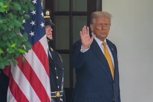 (250722) -- WASHINGTON, 22 julio, 2025 (Xinhua) -- El presidente estadounidense, Donald Trump (d), saluda mientras espera la llegada del presidente filipino, Ferdinand Romualdez Marcos Jr. en la Casa Blanca, en Washington, D.C., Estados Unidos, el 22 de julio de 2025. (Xinhua/Hu Yousong) (oa) (ah)