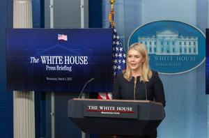 (250305) -- WASHINGTON, 5 marzo, 2025 (Xinhua) -- La secretaria de Prensa de la Casa Blanca, Karoline Leavitt, habla en una conferencia de prensa en la Casa Blanca, en Washington, D.C., Estados Unidos, el 5 de marzo de 2025. La Casa Blanca informó el miércoles que la administración Trump mantiene conversaciones directas con Hamas dirigidas a liberar a los rehenes. (Xinhua/Hu Yousong) (jg) (ah) (ce)