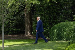 (250512) -- WASHINGTON, 12 mayo, 2025 (Xinhua) -- El presidente estadounidense, Donald Trump, camina para abordar el Marine One en la Casa Blanca, en Washington D.C., Estados Unidos, el 12 de mayo de 2025. (Xinhua/Hu Yousong) (rtg) (ah) (ce)