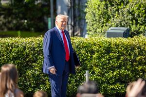 (250429) -- WASHINGTON, 29 abril, 2025 (Xinhua) -- Imagen del 28 de abril de 2025 del presidente estadounidense, Donald Trump, llegando para dar la bienvenida al equipo de fútbol americano de la NFL, Philadelphia Eagles, campeón del Super Bowl, a la Casa Blanca, en Washington, D.C., Estados Unidos. Una encuesta reciente mostró que a medida que el presidente estadounidense, Donald Trump, se acerca a la marca de 100 días de su segundo mandato, su índice de aprobación ha caído al nivel más bajo para cualquier presidente de Estados Unidos en este momento del cargo en los últimos 80 años. (Xinhua/Hu Yousong) (oa) (ah) (vf)