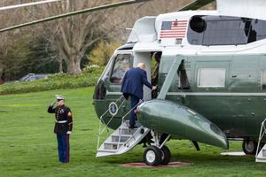 (250328) -- WASHINGTON, 28 marzo, 2025 (Xinhua) -- El presidente estadounidense, Donald Trump, aborda el Marine One en la Casa Blanca, en Washington, D.C., Estados Unidos, el 28 de marzo de 2025. El presidente de Estados Unidos, Donald Trump, dijo que tuvo el viernes una "llamada sumamente productiva" con el primer ministro canadiense, Mark Carney. (Xinhua/Hu Yousong) (oa) (ra) (vf)