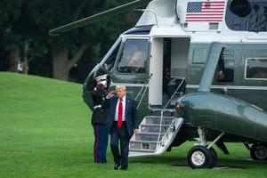 (250714) -- WASHINGTON, 14 julio, 2025 (Xinhua) -- Imagen del 13 de julio de 2025 del presidente estadounidense, Donald Trump, descendiendo del Marine One a su regreso a la Casa Blanca, en Washington, D.C., Estados Unidos. Trump dijo el domingo que Estados Unidos enviará sistemas de misiles interceptores Patriot a Ucrania para ayudar a reforzar las defensas del país contra los ataques rusos. (Xinhua/Hu Yousong) (rtg) (ah) (vf)