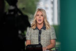 (250722) -- WASHINGTON, 22 julio, 2025 (Xinhua) -- Imagen del 21 de julio de 2025 de la secretaria de Prensa de la Casa Blanca, Karoline Leavitt, hablando durante una entrevista con Fox News en la Casa Blanca, en Washington, D.C., Estados Unidos. Leavitt informó el lunes que la Administración Trump revocó la credencial de prensa del Wall Street Journal (WSJ) para cubrir el próximo viaje del presidente a Escocia, según informaron medios estadounidenses. La decisión se produjo pocos días después de que ese diario publicara que Trump supuestamente escribió una carta al acaudalado financiero Jeffrey Epstein en 2003. (Xinhua/Hu Yousong) (jg) (ra) (vf)