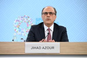 (260417) -- WASHINGTON, 17 abril, 2026 (Xinhua) -- Imagen del 16 de abril de 2026 del director para Medio Oriente y Asia Central del Fondo Monetario Internacional (FMI), Jihad Azour, hablando en una conferencia de prensa sobre las perspectivas económicas regionales para Medio Oriente y Asia Central, en Washington D. C., Estados Unidos. El crecimiento económico en la región MENAP (Medio Oriente, Africa del Norte, Afganistán y Pakistán) se desacelerará al 1,4 por ciento en 2026 debido al conflicto regional, un descenso de 2,3 puntos porcentuales respecto a las proyecciones de octubre de 2025, de acuerdo con las previsiones contenidas en un informe del FMI publicado el jueves. (Xinhua/Li Rui) (da) (ra) (ce)