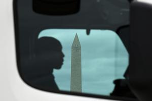 (251013) -- WASHINGTON, 13 octubre, 2025 (Xinhua) -- Imagen del 12 de octubre de 2025 del Monumento a Washington visto a través de la ventana de un camión, Washington D. C., Estados Unidos. El cierre del Gobierno federal entró a su doceavo día. (Xinhua/Li Rui) (rtg) (ah) (ce)