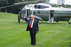 (250908) -- WASHINGTON, 8 septiembre, 2025 (Xinhua) -- Imagen del 7 de septiembre de 2025 del presidente estadounidense, Donald Trump, preparándose para abordar el Marine One, en la Casa Blanca, en Washington, D.C., Estados Unidos. Trump afirmó el domingo que la Casa Blanca está lista para pasar a la segunda fase de sanciones contra Rusia, en medio de las estancadas negociaciones de paz para poner fin a la crisis ucraniana. (Xinhua/Hu Yousong) (rtg) (ah) (vf)