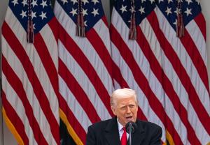 (251125) -- WASHINGTON, 25 noviembre, 2025 (Xinhua) -- El presidente estadounidense, Donald Trump, habla durante la Ceremonia Nacional de Indulto del Pavo de Acción de Gracias, en la Casa Blanca, en Washington D. C., Estados Unidos, el 25 de noviembre de 2025. (Xinhua/Hu Yousong) (oa) (ah) (ce)