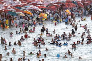 (250716) -- ALEJANDRIA, 16 julio, 2025 (Xinhua) -- Personas se refrescan en una playa del Mar Mediterráneo durante una ola de calor, en Alejandría, Egipto, el 16 de julio de 2025. Egipto está atravesando una ola de calor excepcional, con altas temperaturas y humedad que plantean riesgos significativos para la salud pública y afectan a sectores clave como la agricultura y la industria. (Xinhua/Ahmed Gomaa) (ah) (ra) (ce)