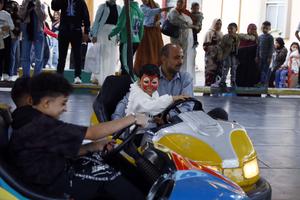 (250402) -- EL CAIRO, 2 abril, 2025 (Xinhua) -- Imagen del 1 de abril de 2025 de personas conduciendo automóviles chocadores en un parque de diversiones durante las vacaciones del Eid al-Fitr, en El Cairo, Egipto. (Xinhua/Ahmed Gomaa) (jg) (da) (vf)