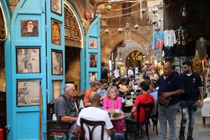 (251023) -- EL CAIRO, 23 octubre, 2025 (Xinhua) -- Imagen del 22 de octubre de 2025 de personas pasando el tiempo en una antigua cafetería en el antiguo mercado de Khan el-Khalili, en El Cairo, Egipto. Ubicado en el corazón del antiguo distrito islámico de El Cairo, el centenario mercado de Khan el-Khalili es considerado una de las atracciones turísticas más populares de Egipto. (Xinhua/Sui Xiankai) (da) (ra) (ce)