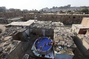 (250812) -- EL CAIRO, 12 agosto, 2025 (Xinhua) -- Niños se refrescan en una piscina móvil durante una ola de calor, en El Cairo, Egipto, el 12 de agosto de 2025. (Xinhua/Ahmed Gomaa) (jg) (ra) (vf)