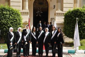 (250908) -- GIZA, 8 septiembre, 2025 (Xinhua) -- Imagen del 7 de septiembre de 2025 de juezas posando para una fotografía grupal en el Consejo de Estado, en Giza, Egipto. Egipto ha nombrado por primera vez a 48 juezas para su Consejo de Estado a través de una vía de acceso para principiantes, una medida que subraya los esfuerzos del país por promover el empoderamiento de las mujeres y la reforma judicial. (Xinhua/Ahmed Gomaa) (oa) (ah) (vf)