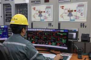 (250704) -- AHUACHAPAN, 4 julio, 2025 (Xinhua) -- Imagen del 1 de junio de 2025 de un trabajador supervisando el funcionamiento de las plantas y rotores en las instalaciones de LaGeo, la empresa estatal a cargo de la operación de la Central Geotérmica Ahuachapán, en el departamento de Ahuachapán, El Salvador. Con más medio siglo de convertir el calor de la tierra en electricidad limpia, El Salvador es reconocido actualmente por ser el líder centroamericano en generación de energía geotérmica y hacer de esta una fuente de desarrollo. (Xinhua/Alexander Peña) (ap) (jg) (da) (ce)