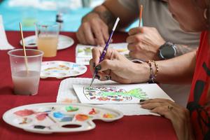 (250828) -- SAN SALVADOR, 28 agosto, 2025 (Xinhua) -- Imagen del 23 de agosto de 2025 de turistas pintando piezas artísticas en el Centro de Desarrollo Artesanal Interactivo (CEDART), en el departamento de San Salvador, capital de El Salvador. En el centro histórico de San Salvador, la capital salvadoreña, en las inmediaciones de la emblemática plaza Morazán, se levanta un edificio de tres niveles que busca tender un puente entre tradición y modernidad: el CEDART. (Xinhua/Alexander Peña) (ap) (ah) (ra) (vf)