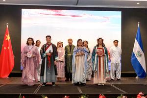 (260203) -- SAN SALVADOR, 3 febrero, 2026 (Xinhua) -- Imagen del 2 de febrero de 2026 de estudiantes del Instituto Confucio de El Salvador, realizando una presentación durante una recepción por la celebración del Año Nuevo chino, organizada por la Embajada de China en El Salvador, en el departamento de San Salvador, capital de El Salvador. A pocos días del inicio del Año Nuevo chino del calendario lunar, la Embajada de China en El Salvador ofreció el lunes una recepción conmemorativa que reunió a autoridades salvadoreñas, cuerpo diplomático, empresarios y miembros de la comunidad china, en un ambiente de intercambio cultural y de celebración de la amistad bilateral. (Xinhua/Alexander Peña) (ap) (oa) (ah) (vf)