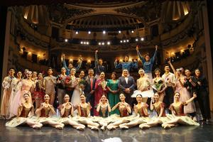 (251108) -- SAN SALVADOR, 8 noviembre, 2025 (Xinhua) -- Imagen del 4 de noviembre de 2025 del ministro de Cultura salvadoreño, Raúl Castillo (7-d), Feng Ying (9-d), asesora artística del Ballet Nacional de China, y el embajador de China en El Salvador, Zhang Yanhui (10-d), posando junto a integrantes del Ballet Nacional de China durante una gala en el Teatro Nacional de San Salvador, en el departamento de San Salvador, capital de El Salvador. Aplausos, ovaciones y emoción llenaron el histórico Teatro Nacional de San Salvador las noches de los pasados días 4 y 5 de noviembre, cuando el Ballet Nacional de China ofreció una deslumbrante gala que dejó sin aliento al público salvadoreño. (Xinhua/Alexander Peña) (ap) (jg) (da)