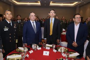 (250726) -- SAN SALVADOR, 26 julio, 2025 (Xinhua) -- (De izq. a der.) Imagen del 24 de julio de 2025 del ministro de Defensa salvadoreño, René Merino Monroy, el fiscal general salvadoreño, Rodolfo Delgado, el embajador de China en El Salvador, Zhang Yanhui, y el ministro de Trabajo y Previsión Social salvadoreño, Rolando Castro, participando durante una ceremonia por la conmemoración del 98º aniversario de la fundación del Ejército Popular de Liberación (EPL), en el departamento de San Salvador, El Salvador. La Embajada de la República Popular China conmemoró el jueves el 98º aniversario de la fundación del EPL con una ceremonia solemne en la que participaron altos funcionarios de El Salvador, diplomáticos, miembros de la comunidad china y representantes de empresas chinas y salvadoreñas. (Xinhua/Alexander Peña) (ap) (jg) (da)