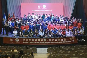 (250626) -- SAN SALVADOR, 26 junio, 2025 (Xinhua) -- Imagen del 24 de junio de 2025 de autoridades de la Universidad de El Salvador (UES), el Instituto Confucio de El Salvador, invitados y representantes de la empresa china Jack & King's posando junto a alumnos universitarios durante el encuentro cultural titulado "La Gastronomía China llega a los Campus de Centroamérica" organizado por la UES, Diario El Salvador, el Instituto Confucio de la UES, así como Jack & King's, como parte del Programa de Intercambio Cultural Juvenil China-El Salvador, en el departamento de San Salvador, El Salvador. Entre sabores intensos y técnicas ancestrales, la gastronomía china llegó a tierras salvadoreñas para cautivar a los jóvenes en un evento de intercambio cultural que combinó el sabor, la tradición y el aprendizaje en la UES, la casa de estudios más importante del país centroamericano. (Xinhua/Alexander Peña) (ap) (jg) (da) (vf)