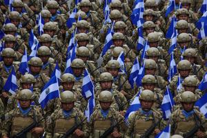 (250915) — SAN SALVADOR, 15 septiembre, 2025 (Xinhua) — Soldados de las Fuerzas Armadas de El Salvador marchan durante un desfile por la celebración del 204 aniversario del Día de Independencia de El Salvador, en el departamento de San Salvador, capital de El Salvador, el 15 de septiembre de 2025. Miles de salvadoreños colmaron el lunes las calles de San Salvador, la capital, para conmemorar los 204 años de independencia de Centroamérica de España, en un desfile cívico militar que, pese a las lluvias nocturnas, inició puntualmente a las 8:00 hora local con un ambiente de música, color y orgullo nacional.(Xinhua/Alexander Peña) (ap) (rtg) (ah) (ce)