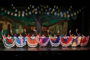 (250427) -- SAN SALVADOR, 27 abril, 2025 (Xinhua) -- Imagen del 26 de abril de 2025 de bailarines folclóricos, participando durante la celebración del Día Internacional de la Danza en el Teatro Presidente, en el departamento de San Salvador, capital de El Salvador. (Xinhua/Alexander Peña) (ap) (rtg) (da)
